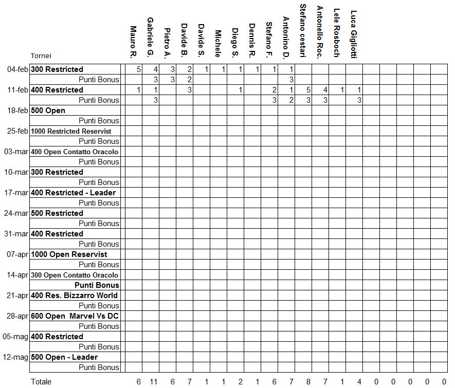 Turni di gioco 2 Tappa 400 Punti Modern Age ( Restricted )